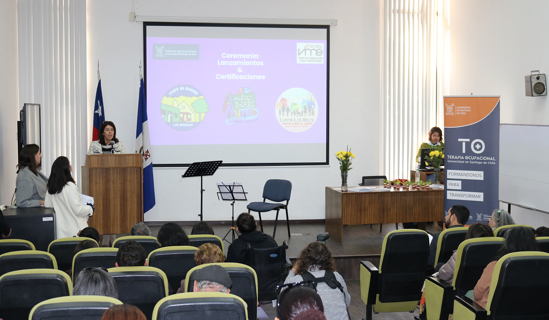 El pasado 17 de mayo, la Escuela de Terapia Ocupacional celebró una ceremonia para el lanzamiento y certificación de los proyectos del Fondo VIME: "Cuido mi Barrio", "Aula Abierta, Saberes Compartidos" y "Barrio Las Rejas, Todo el Poder al Barrio". Este evento reunió a diversos representantes de las comunidades donde se llevaron a cabo estos proyectos, quienes compartieron sus experiencias y aprendizajes.