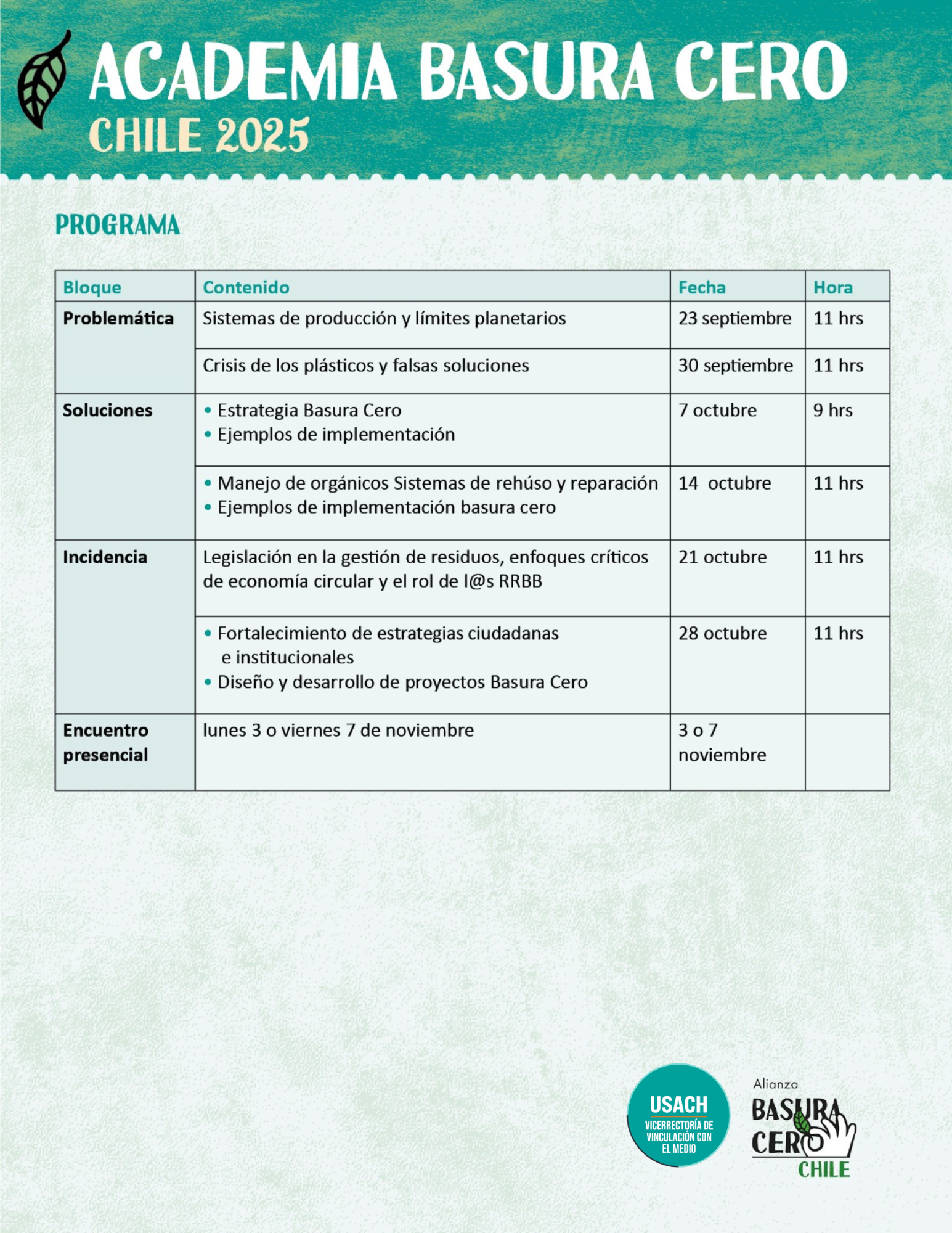 La Alianza Basura Cero Chile, en conjunto con la Vicerrectoría de Vinculación con el Medio de la Universidad de Santiago de Chile (Usach), invitan al lanzamiento de la Academia Basura Cero 2025, un espacio gratuito dirigido a quienes buscan herramientas técnicas y políticas para promover la reducción de residuos desde una perspectiva territorial, social y ambiental.