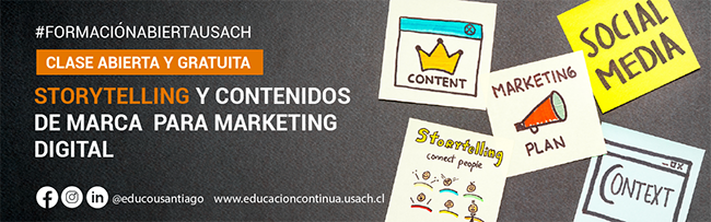 Inscríbete en la próxima clase abierta y gratuita: "Storytelling y contenidos de marca para marketing digital", organizada por el Departamento de Educación Continua y la Facultad de Administración y Economía.