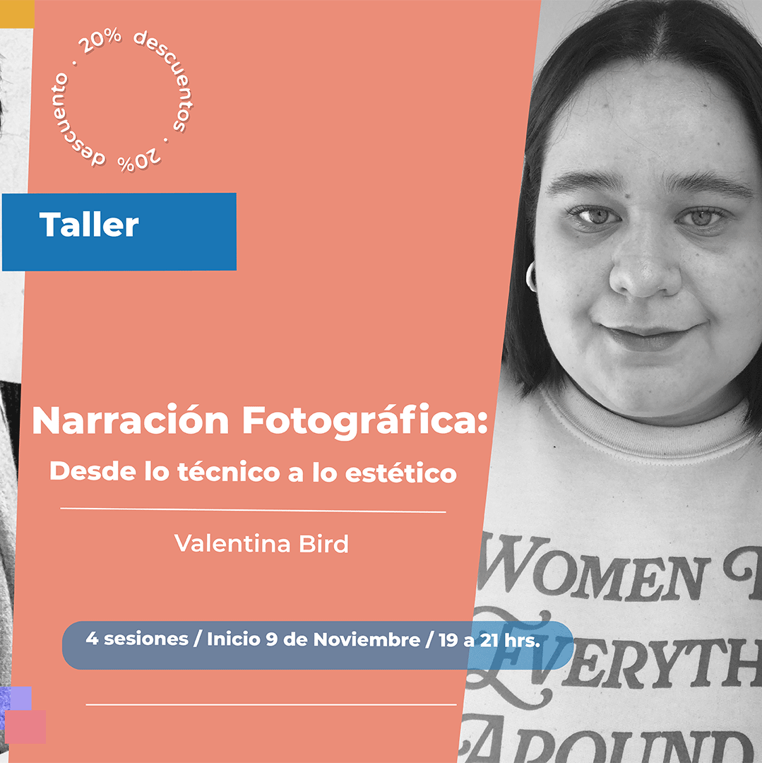 - Taller Narración Fotográfica: desde lo técnico a lo estético. Con Valentina Bird | Inicio: 9 de noviembre, 4 sesiones, de 19.00 a 21:00 horas.