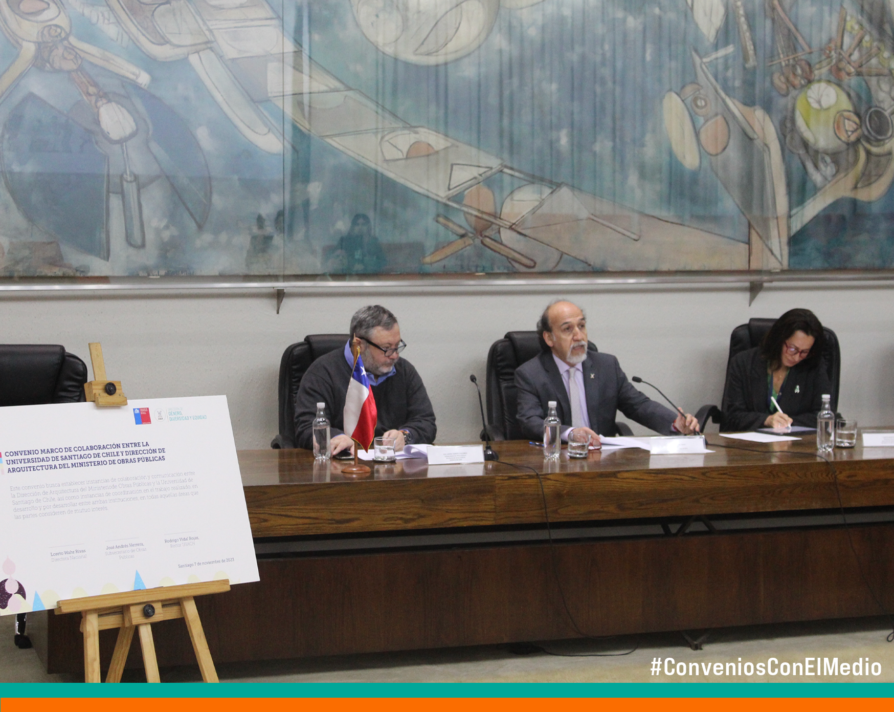 La ceremonia fue presidida por el rector Dr. Rodrigo Vidal Rojas y la directora de la repartición ministerial, Loreto Wahr Rivas. Además contó con la presencia del subsecretario de Obras Públicas, José Herrera Chavarría, de la vicerrectora de Vinculación con el Medio Usach, Dra. Patricia Pallavicini Magnère, también de la directora de Género, Diversidad y Equidad del Plantel, Dra. Yenniffer Ávalos Carrasco, entre otras autoridades y funcionarias (os) de ambas instituciones.