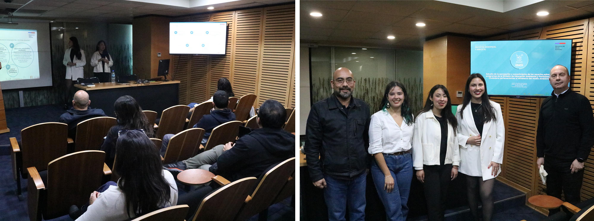 Un importante hito de vinculación entre la academia y el sector público se concretó con el exitoso cierre de la asignatura “Evaluación de Proyectos Sociales” bajo la modalidad de Asignatura Vinculada. La iniciativa, que se enmarca en la malla de Ingeniería Civil en Ambiente de la Universidad de Santiago de Chile (Usach), permitió a las estudiantes Valeria Bustos Henríquez y Victoria Mariangel Berton desarrollar un estudio aplicado para la División de Educación Ambiental y Participación Ciudadana del Ministerio del Medio Ambiente (MMA).