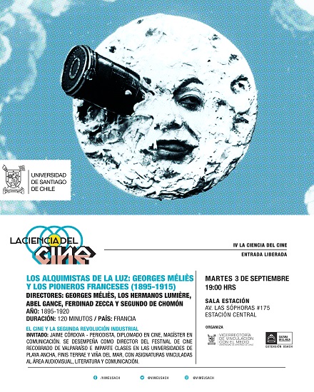 En esta oportunidad, conversaremos sobre el cine y la segunda revolución industrial con la proyección "Los alquimistas de la luz: Georges Méliès y los pioneros franceses (1895-1915)", y con el expositor Jaime Córdova, director del Festival de Cine Recobrado de Valparaíso, y Magíster en Comunicación.