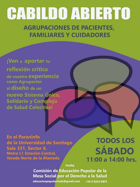 La Comisión de Educación Popular de la Mesa Social por el Derecho a la Salud invita a participar en el Cabildo Abierto de Agrupaciones de Pacientes, Familiares y Cuidadores.